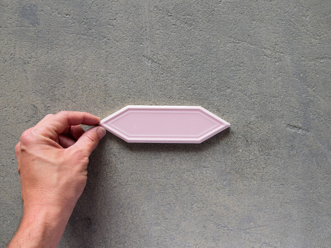El azulejo alfardón tiene una forma parecida a un azulejo hexagonal alargado pero en su parte central es como un rectángulo y en los laterales terminan con una forma triangular.