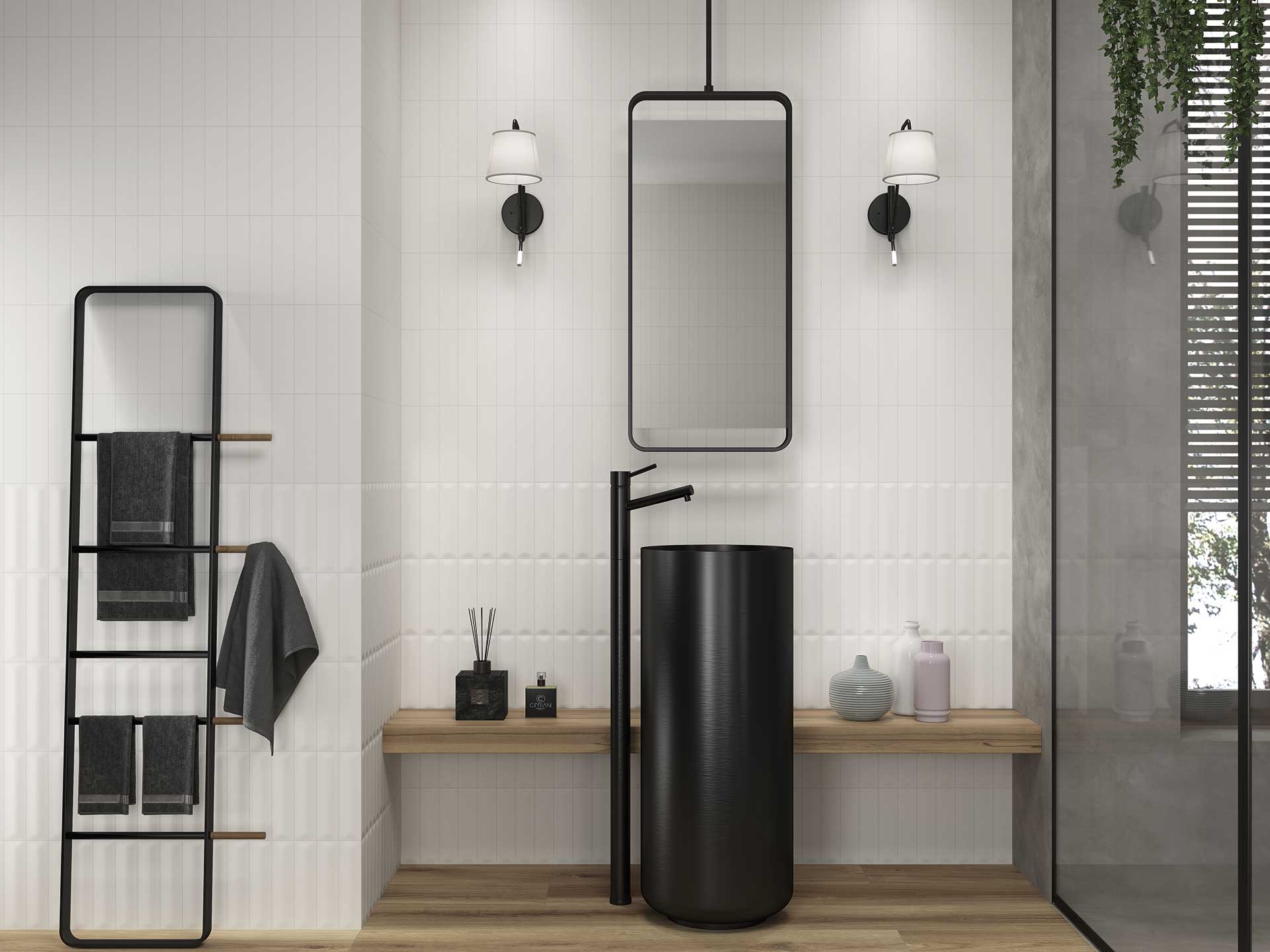 Exploración del catálogo: Acceda a nuestra plataforma oficial https://trestile.es/ y utilice los filtros de navegación para localizar modelos por color, acabado, geometría o estancia.