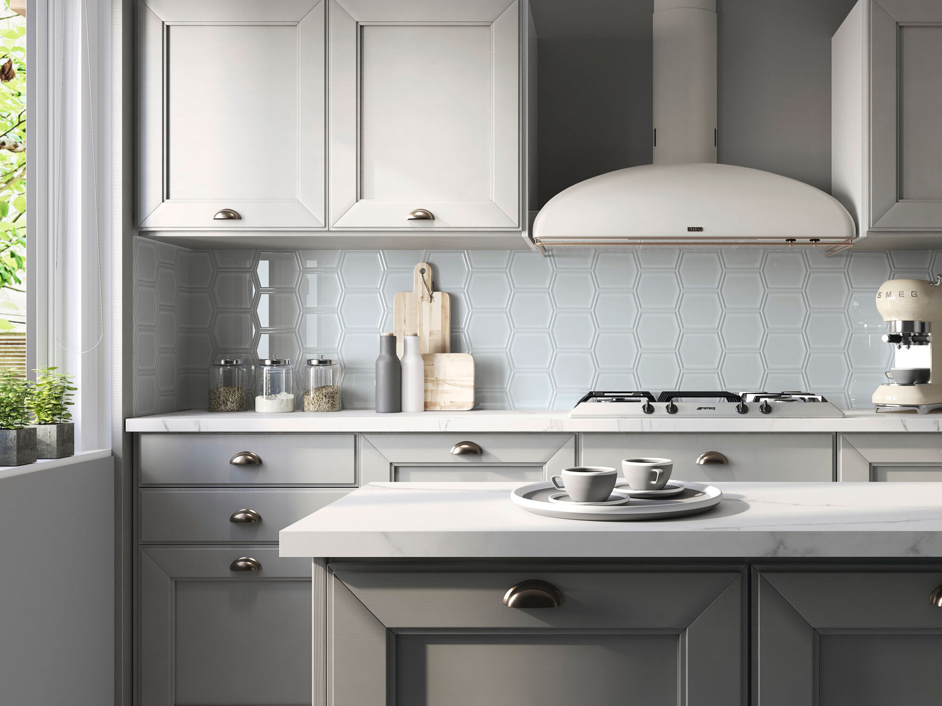 Este azulejo destaca por su versatilidad y elegancia. Es ideal para crear ambientes modernos y sofisticados, aportando un punto de luz gracias a su acabado brillante. Su forma hexagonal permite diseños creativos y originales, perfectos para salpicaderos de cocina, revestimientos de baño o incluso paredes decorativas en salones y recibidores.