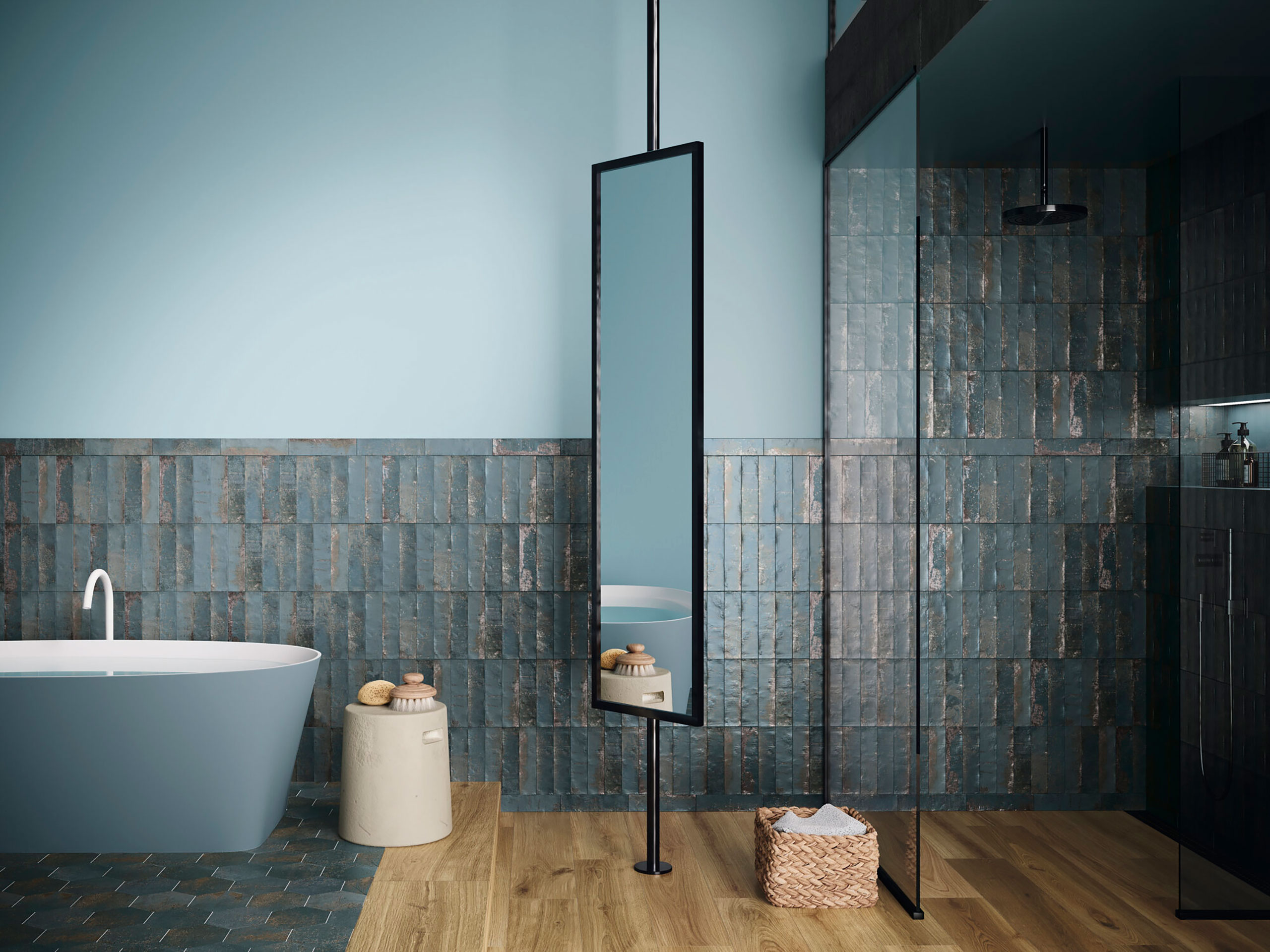 El azulejo porcelánico azul hexagonal Magnetism Azul 13,9×16 es una propuesta audaz y vibrante que aporta profundidad y personalidad a cualquier superficie. Su tonalidad azul oscuro, con reflejos metálicos en cobre y pizarra, crea un efecto sofisticado y con movimiento. Fabricado en porcelánico de alta resistencia, este modelo es apto tanto para suelos como para paredes, en interior o exterior. Su acabado antideslizante (Clase 2) lo hace perfecto para baños, cocinas o terrazas, y sus 25 gráficas distintas aportan riqueza visual. Su forma hexagonal, moderna y elegante, permite diseños envolventes y composiciones creativas. Un azulejo ideal para quienes quieren romper con la monotonía de los tonos neutros y crear un impacto visual potente.