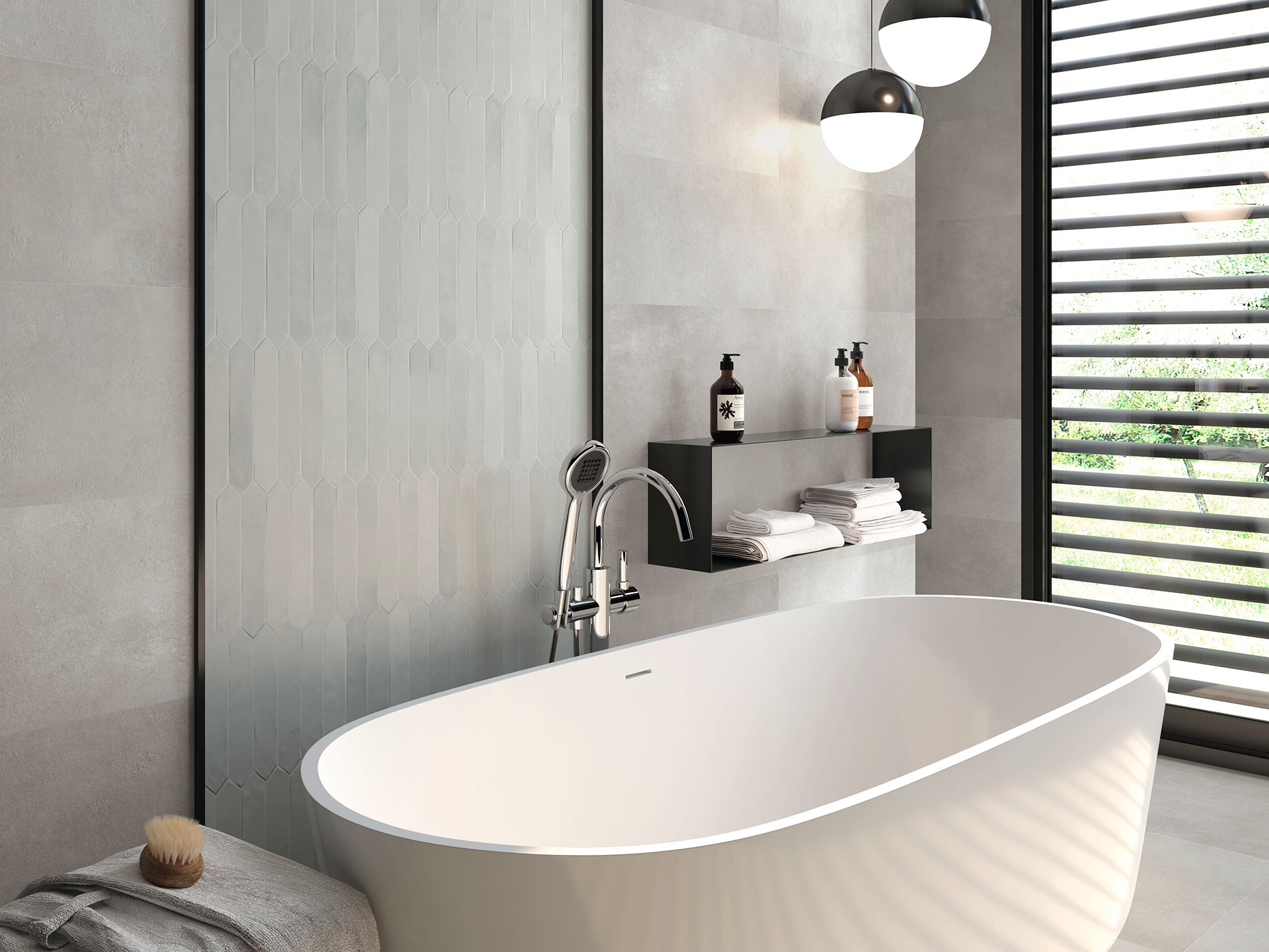 Azulejos porcelánicos losanga gris en baños