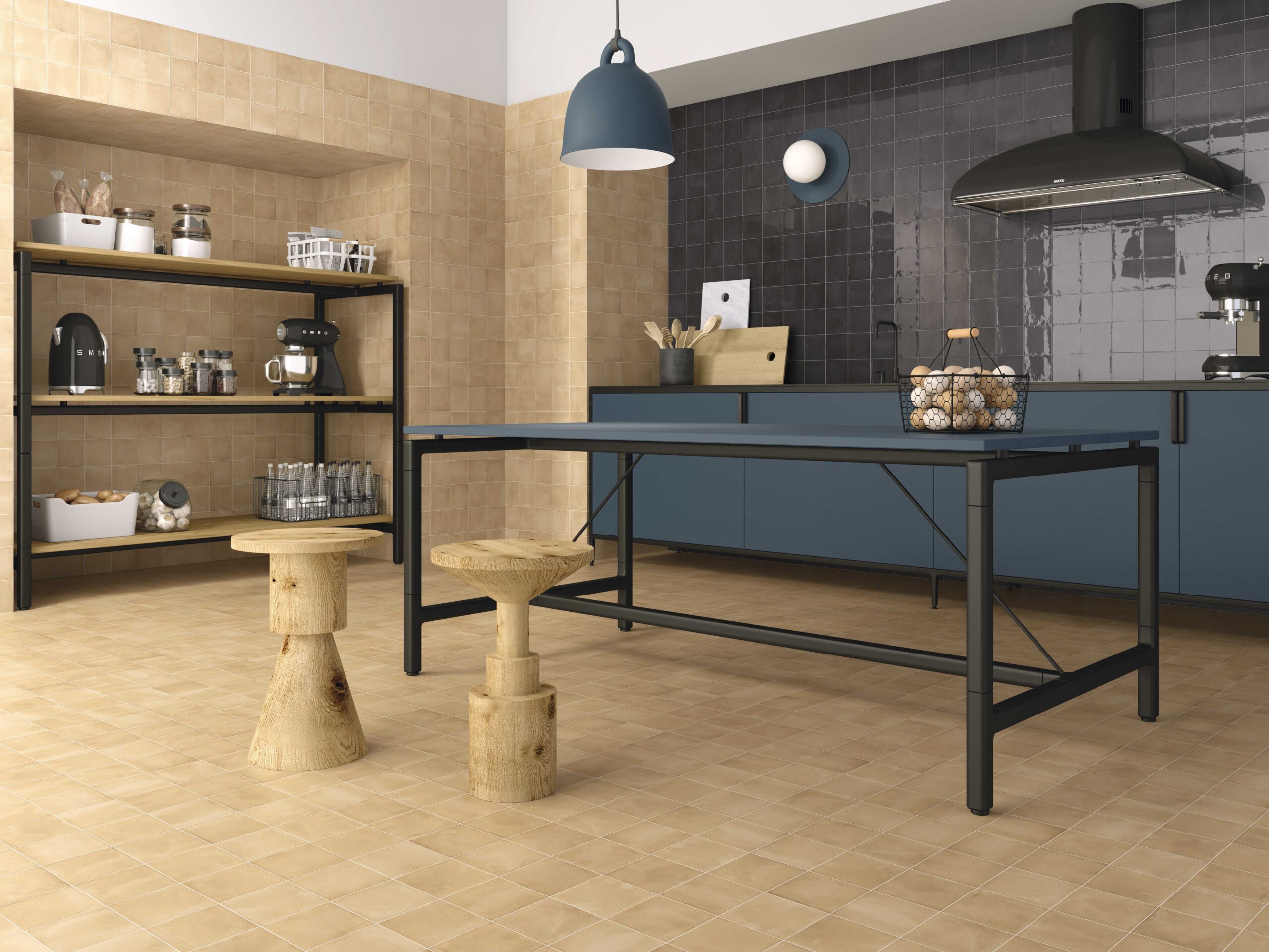 Muy recomendable con piezas brillantes como el Faenza Blanco Brillo o Faenza Azul Brillo. También queda excelente con juntas en tonos gris cemento o beige.
