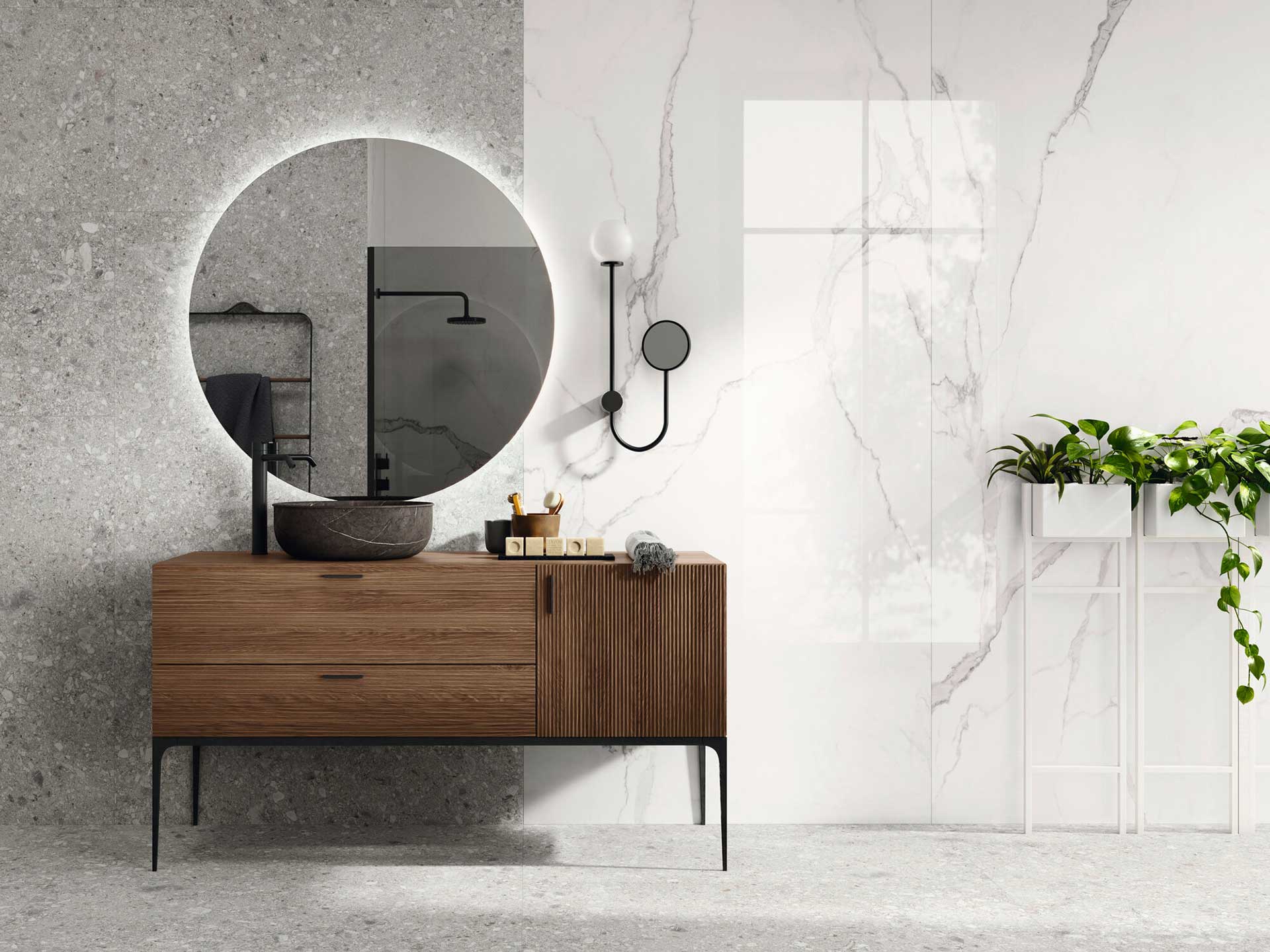 El azulejo porcelánico terrazo veneciano 60×120 podemos encontrarlo en diferentes tonos. Este magnifico azulejo con formato cuadrada está pensado para colocarlo en diferentes zonas del baño y de la cocina. Este azulejo al estar fabricado en porcelánico con bordes rectificados tiene una fácil colocación. Por esto, para estilos industriales, este azulejo es la mejor elección para su uso en paredes y suelos. El espesor del azulejo es de 9,9 mm y la unidad de venta es por m². Su acabado es mate por lo que podrás combinarlo con azulejos acabado brillo sin ningún problema. ¿Dónde puedo colocarlo? Principalmente este azulejo lo puedes colocar en la cocina, y en los baños. Sin embargo, si tu casa es de estilo industrial la mejor opción puede ser para paredes exteriores de balcones y terrazas, así como, en las zonas interiores. ¿Con qué otro azulejo lo puedo combinar? Puedes elegir azulejos de color negro, color blanco, beige. E incluso con gresites, que actualmente, se utilizan mucho para el revestimiento de pies de ducha y bañeras. Para más ideas y novedades decorativas puedes seguirnos en nuestras redes sociales, Facebook e Instagram.